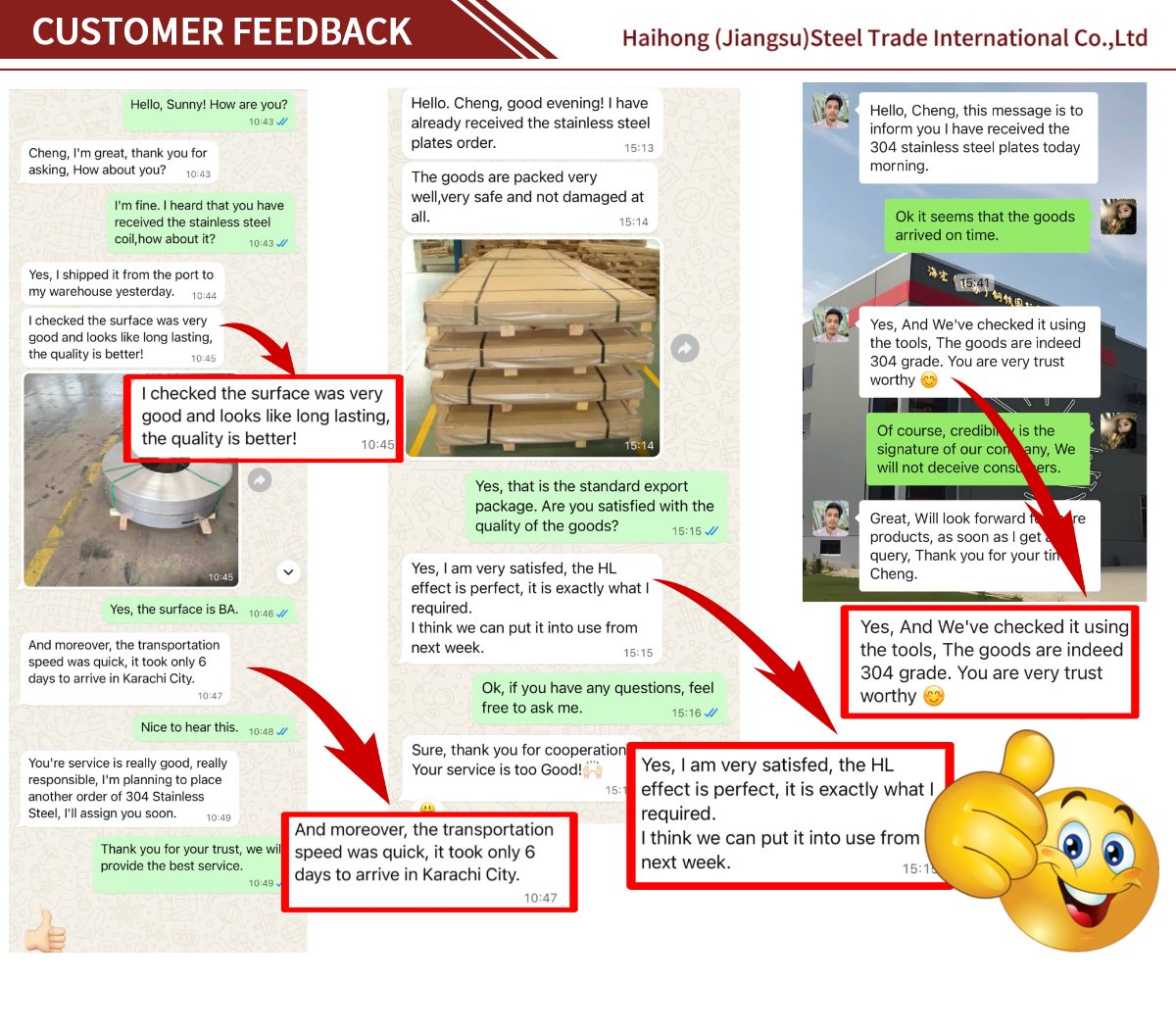 Upholding the principle of "customer first", the company provides personalized customization services. From product design to production and delivery, every step is strictly monitored to ensure the creation of high-quality products that meet the specific requirements of global customers. With its excellent product quality and good business reputation, the company has continuously expanded its business scope and won wide recognition and trust from customers at home and abroad. In the future, Haihong Steel will continue to forge ahead, drive development through innovation, and inject new vitality into the global metal products market.